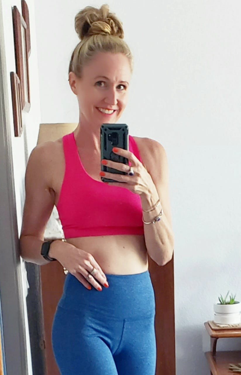 The material is super soft and comfy! Love to do my workouts in this beautiful set!